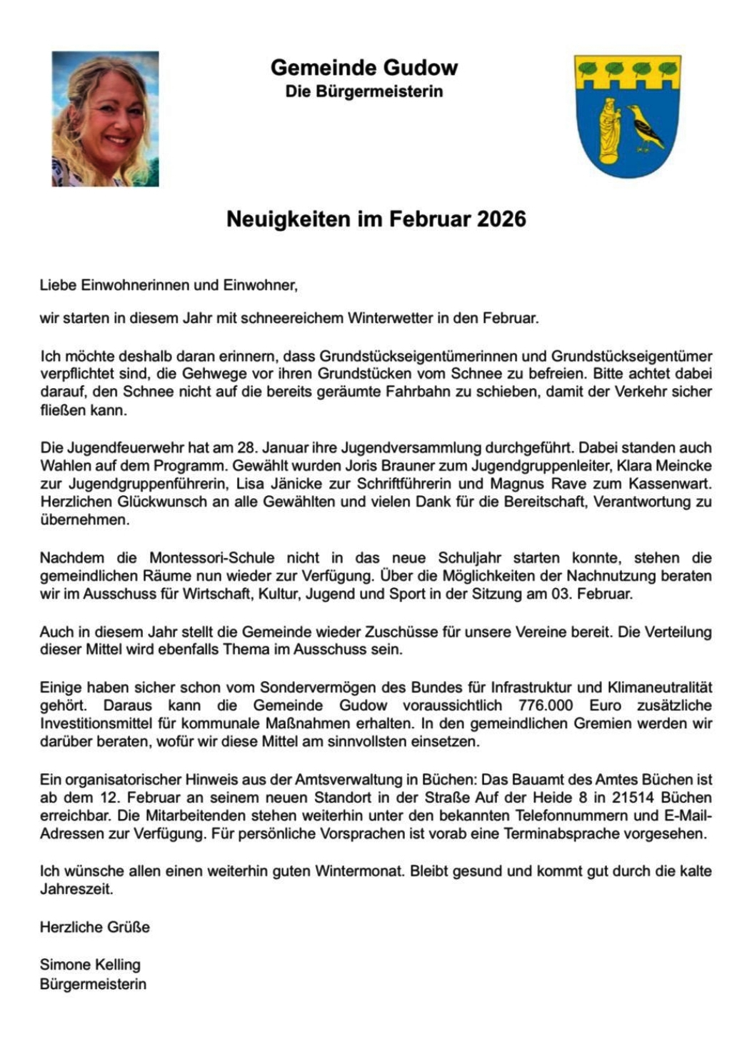 Unsere Bürgermeisterin informiert: Neuigkeiten im Februar